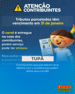 Tupã, SP- Contribuintes que parcelaram seus débitos com a Prefeitura já podem retirar seus carnês na Central de Atendimento que funciona no Paço Municipal ou