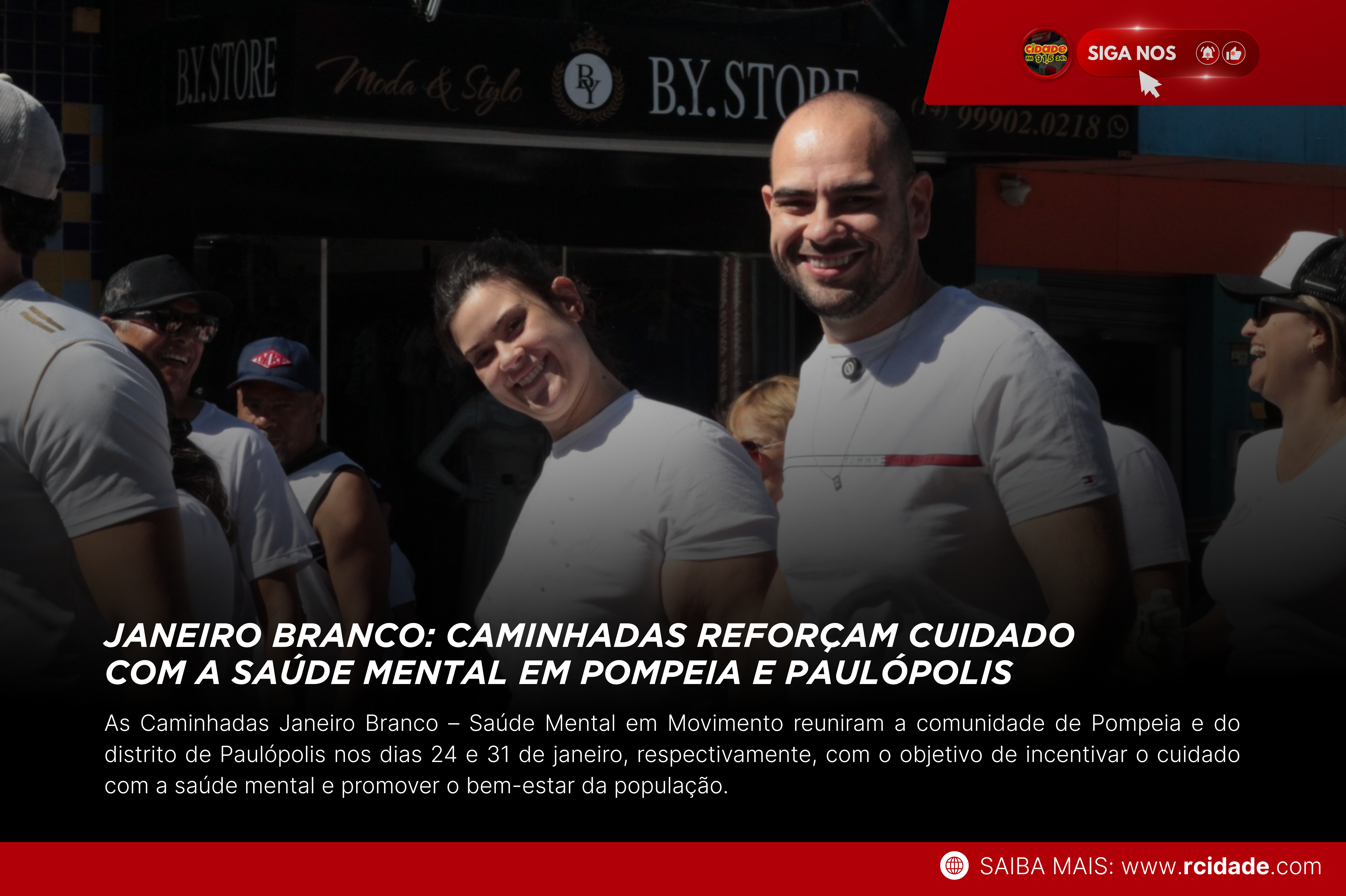 Ações do Janeiro Branco reuniram a comunidade em Pompeia e Paulópolis para incentivar o cuidado com a saúde mental. As Caminhadas Janeiro Branco – Saúde