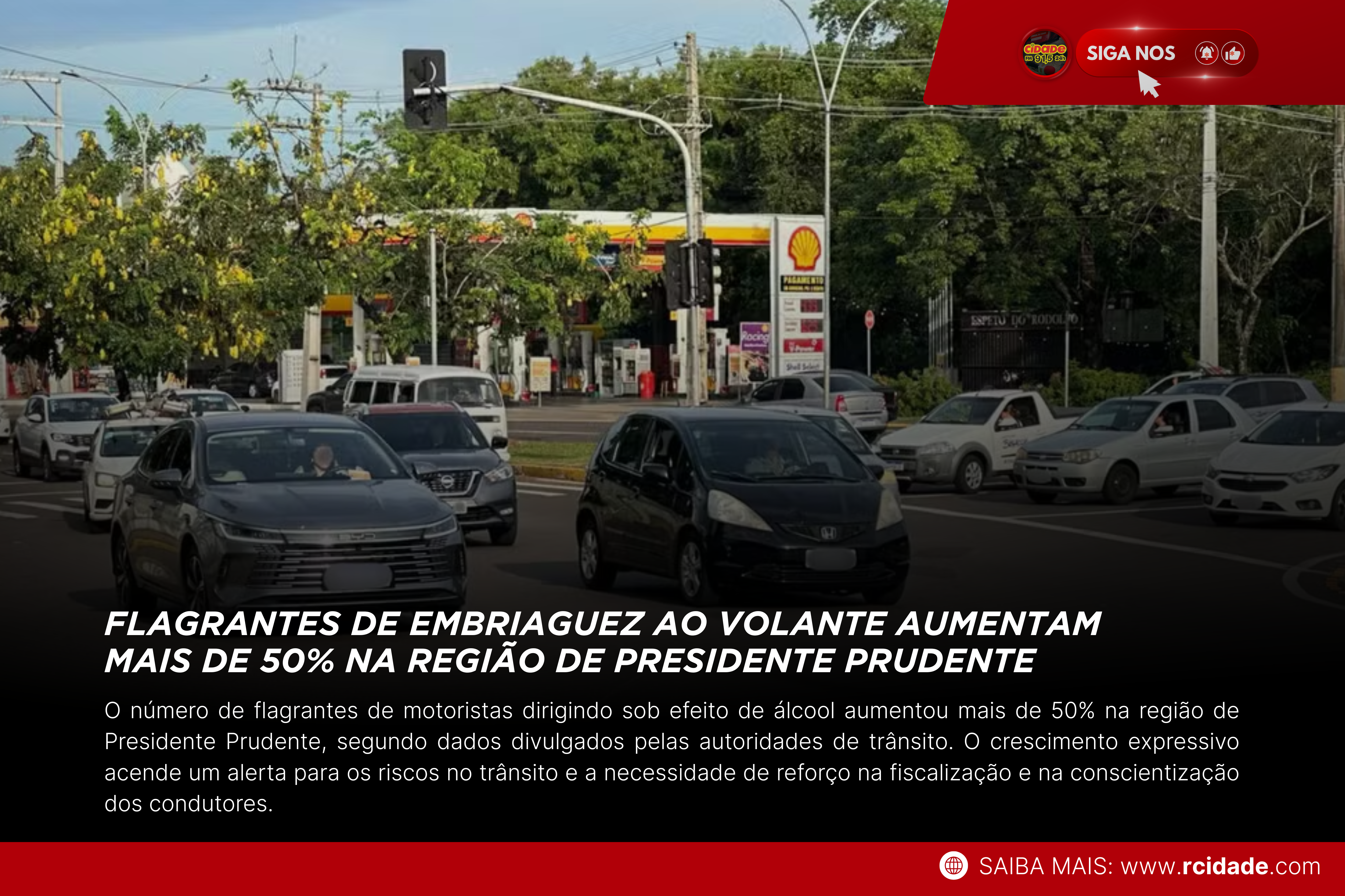 O número de flagrantes de motoristas dirigindo sob efeito de álcool aumentou mais de 50% na região de Presidente Prudente, segundo dados divulgados pelas autoridades