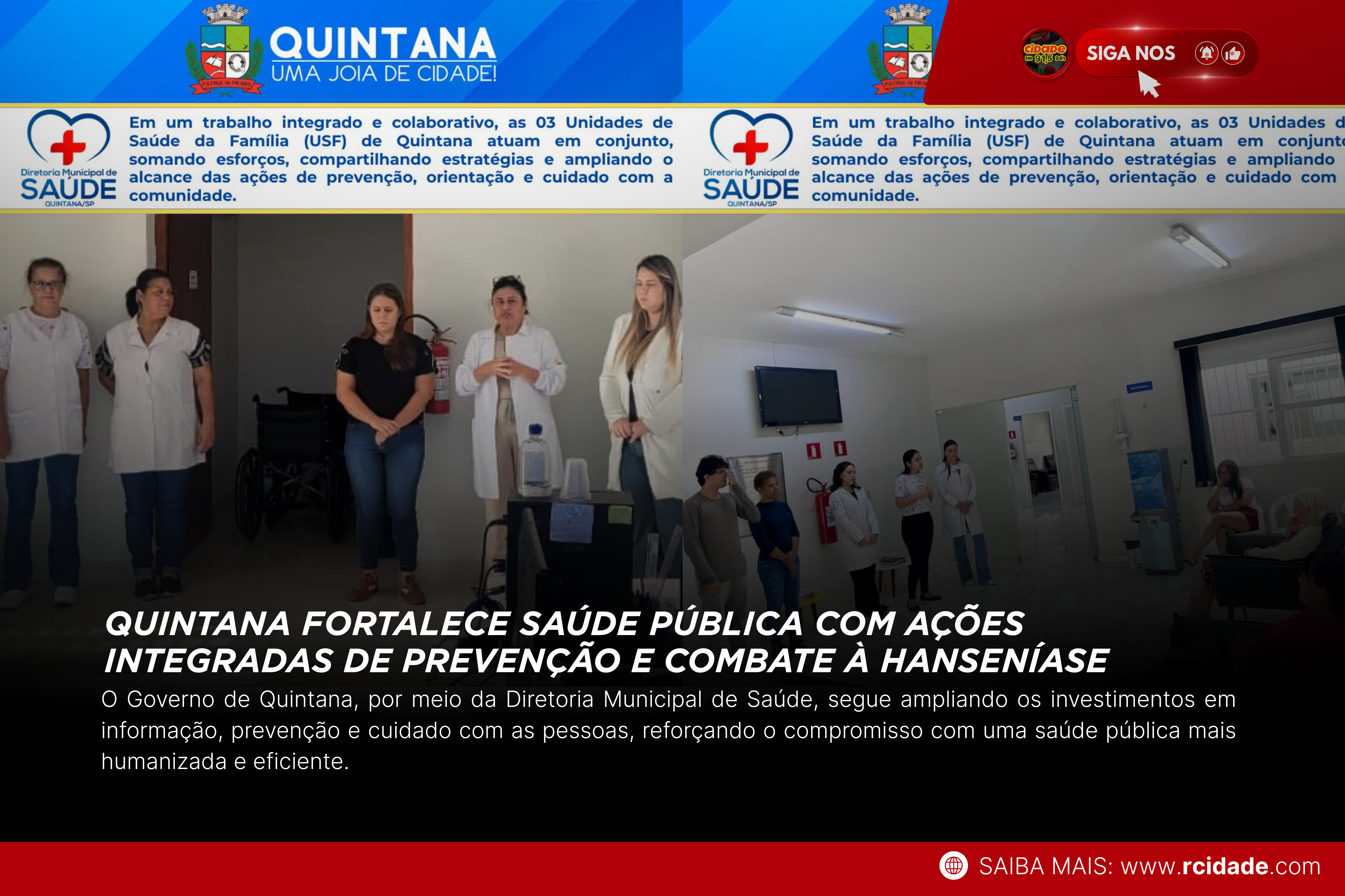 O Governo de Quintana, por meio da Diretoria Municipal de Saúde, segue ampliando os investimentos em informação, prevenção e cuidado com as pessoas, reforçando o