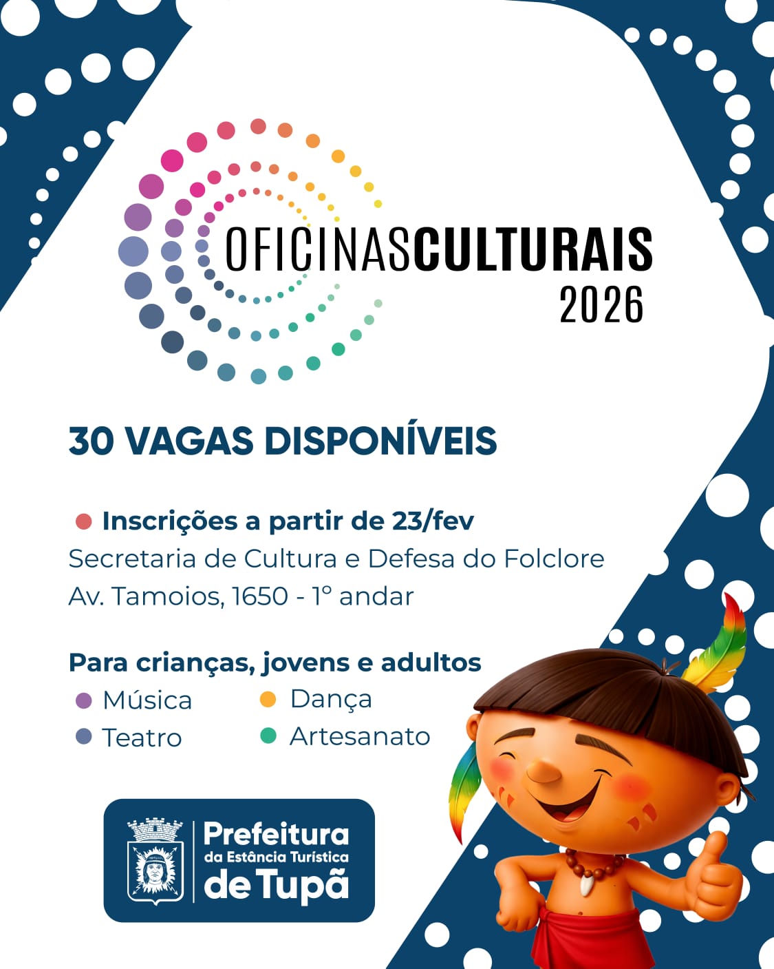 Geral Secretaria de Cultura e Defesa do Folclore abre inscrições para oficinas Atividades irão oferecer aulas de música, teatro, dança e artesanato a crianças, jovens e adultos 20 de fevereiro de 2026 Nenhum comentário