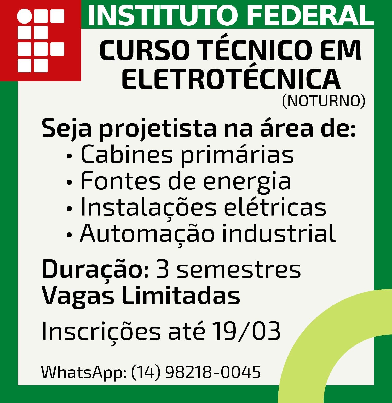 Geral Curso Técnico em Eletrotécnica – Noturno ⚠️ VAGAS ABERTAS TAMBÉM PARA QUATÁ 4 de março de 2026 Nenhum comentário