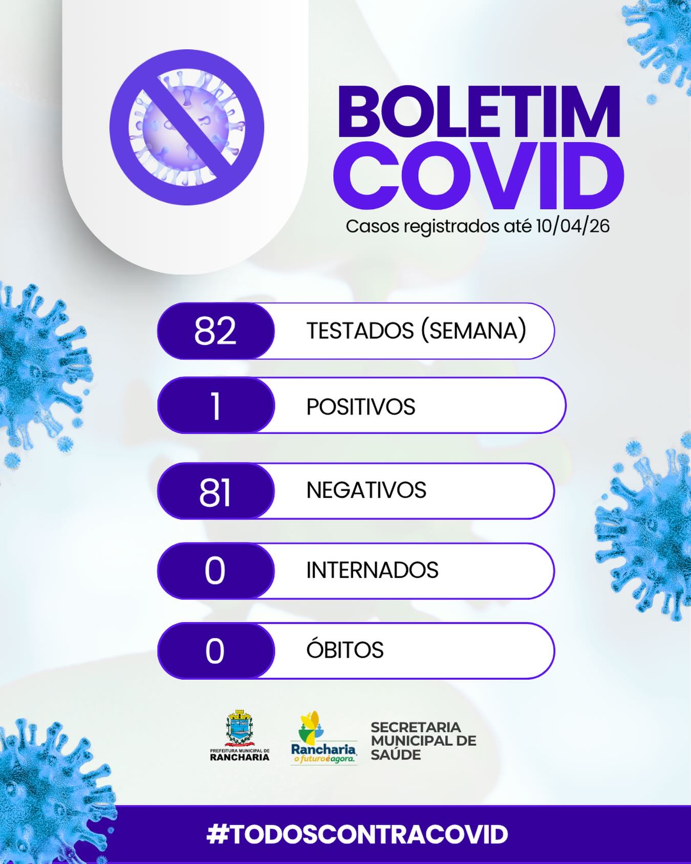 Geral Boletim Covid: veja os registros da Prefeitura de Rancharia até 10/04/2026 10 de abril de 2026 Nenhum comentário