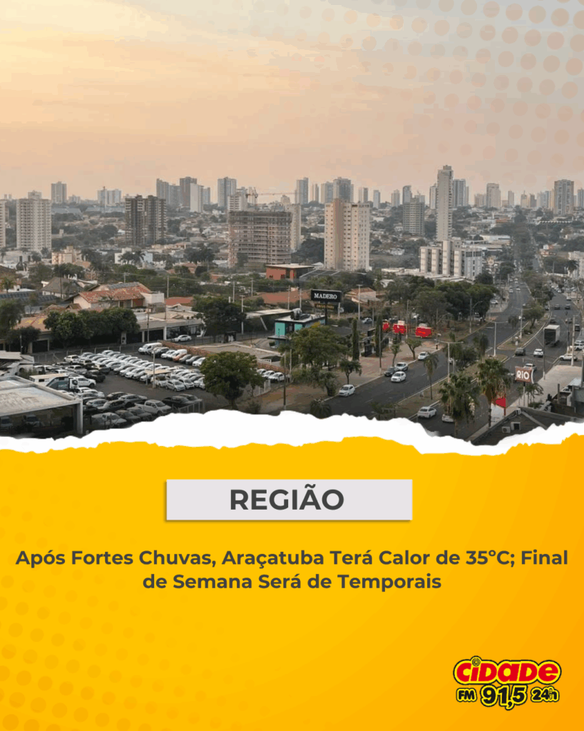 REGIÃO: Após Fortes Chuvas, Araçatuba Terá Calor de 35ºC; Final de Semana Será de Temporais