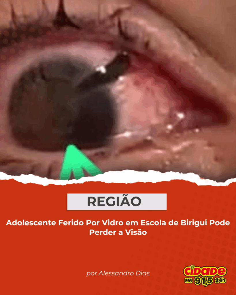 por Alessandro Dias Birigui, SP- Um adolescente de 15 anos corre o risco de perder o olho esquerdo após ser atingido por estilhaços de vidro