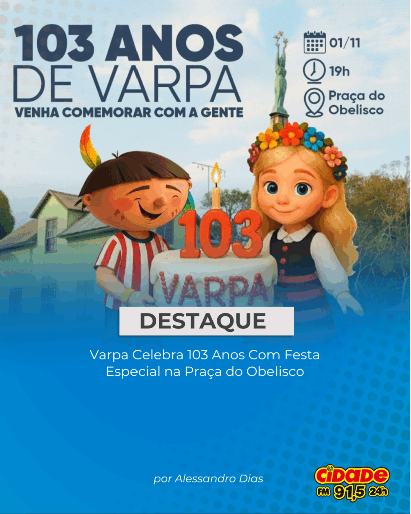Tupã, SP- A Prefeitura da Estância Turística de Tupã realizará, neste sábado (1º), a comemoração dos 103 anos de Varpa, um dos distritos mais tradicionais