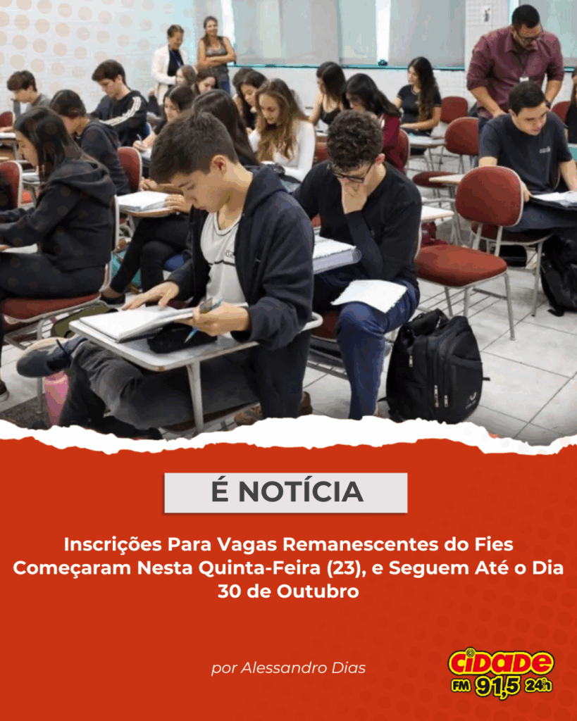 por Alessandro Dias Da redação Tupã, SP- Começa nesta quinta-feira (23) o período de inscrições para as vagas remanescentes do Fundo de Financiamento Estudantil (Fies)