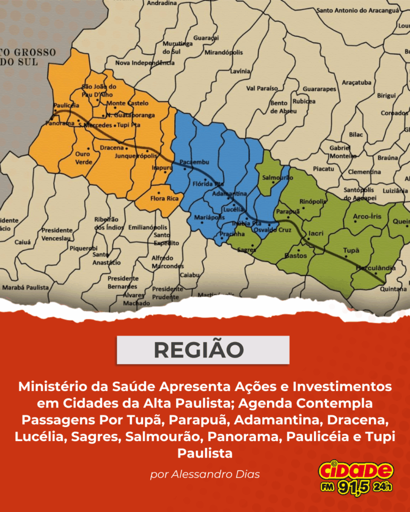 por Alessandro Dias Tupã, SP- Entre os dias 22 e 24 de outubro, uma equipe do Ministério da Saúde visitará cidades da Alta Paulista para