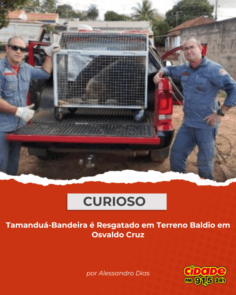 por Alessandro Dias Osvaldo Cruz, SP- Um tamanduá-bandeira foi resgatado pelo Corpo de Bombeiros na manhã deste domingo (19) em Osvaldo Cruz. O animal foi