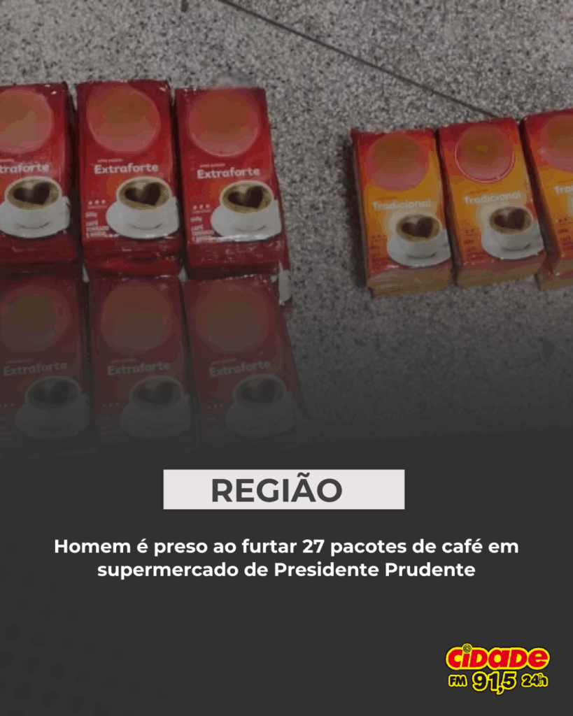 por Alessandro Dias Presidente Prudente, SP- Um homem de 55 anos foi preso na manhã desta segunda-feira (1º) após tentar furtar 27 pacotes de café