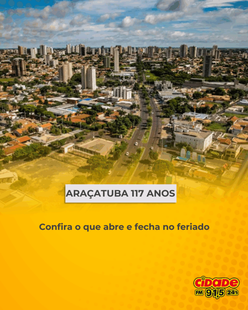 ARAÇATUBA 117 ANOS: Confira o que abre e fecha no feriado
