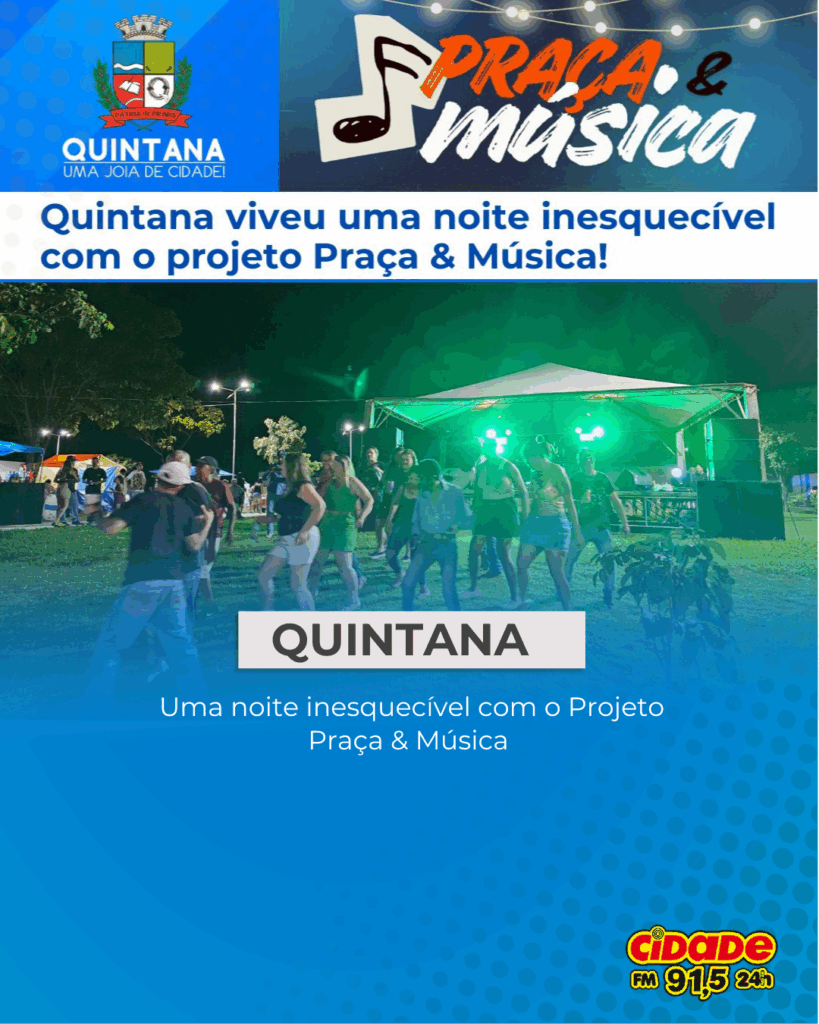 🎶🌟Quintana, SP- No último sábado, 29/11, a Praça do Salão Branco se transformou em um grande palco cultural, reunindo famílias, amigos e amantes da boa