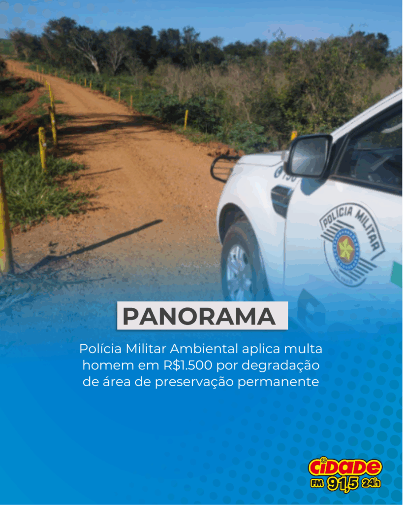por Alessandro Dias Panorama, SP- Um homem de 61 anos foi multado nesta terça-feira (25) por degradar uma Área de Preservação Permanente (APP) em uma