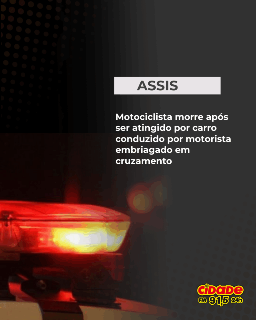 Assis, SP- Um motociclista de 33 anos morreu após ser atingido por um carro na madrugada de sábado (22), em um cruzamento da Avenida Rui