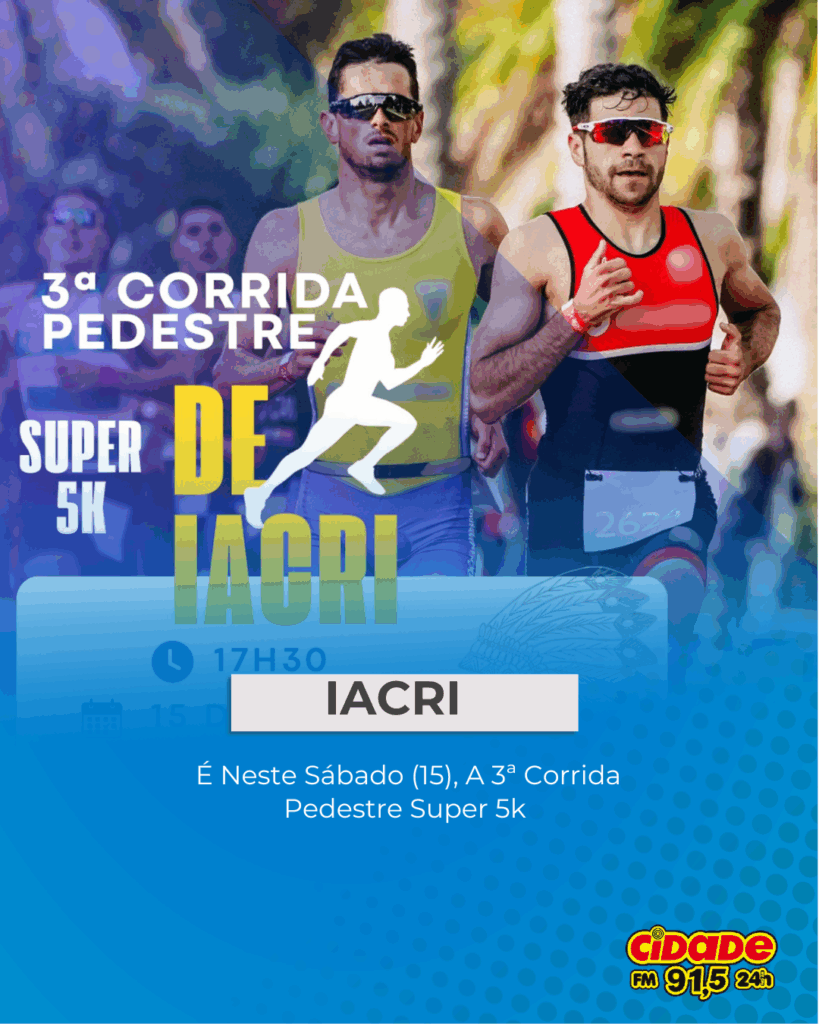 Venham participar desse evento!!! Traga sua familia! #esporte #esporteésaúde Prefeitura Municipal de Iacri Redação Regional Rádio Cidade FM 14/11/2025 – Rádio Cidade FM