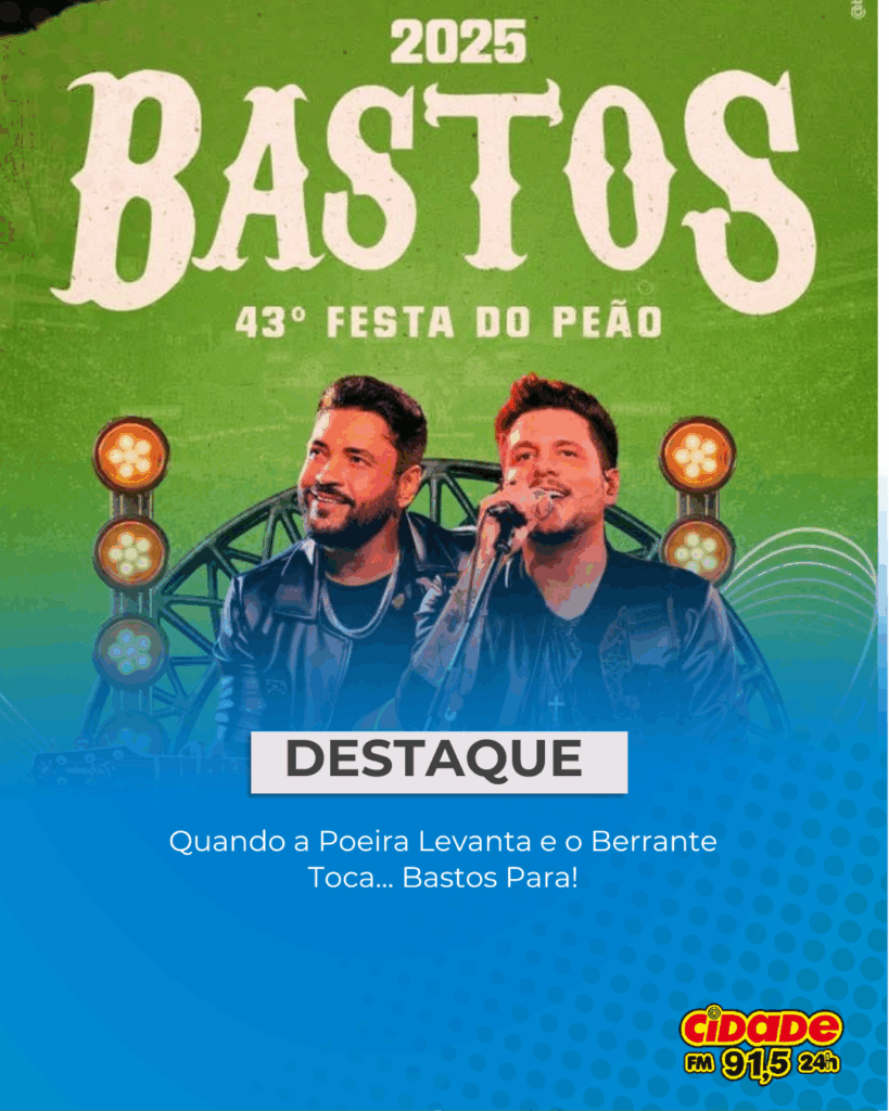 🔥 Bastos, SP- De 20 a 23 de novembro, a Capital do Ovo vira Capital do Rodeio na 43ª Festa do Peão! 20/11 – Quinta•