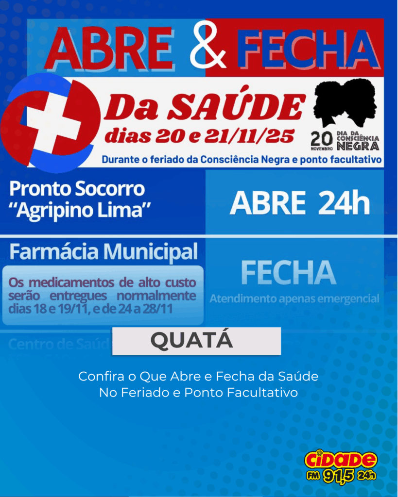 Tupã, SP- Com o feriado do Dia da Consciência Negra, a Prefeitura de Tupã decretou ponto facultativo na sexta-feira (21). Por isso, alguns serviços públicos