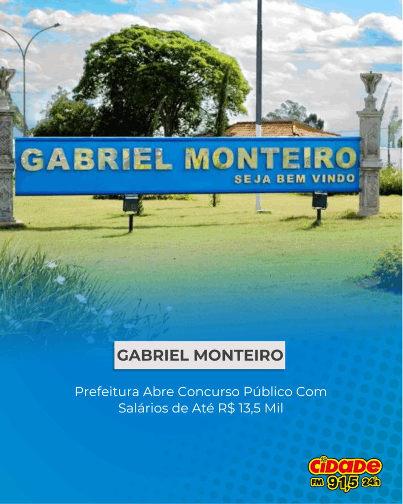 GABRIEL MONTEIRO: Prefeitura Abre Concurso Público Com Salários de Até R$ 13,5 Mil
