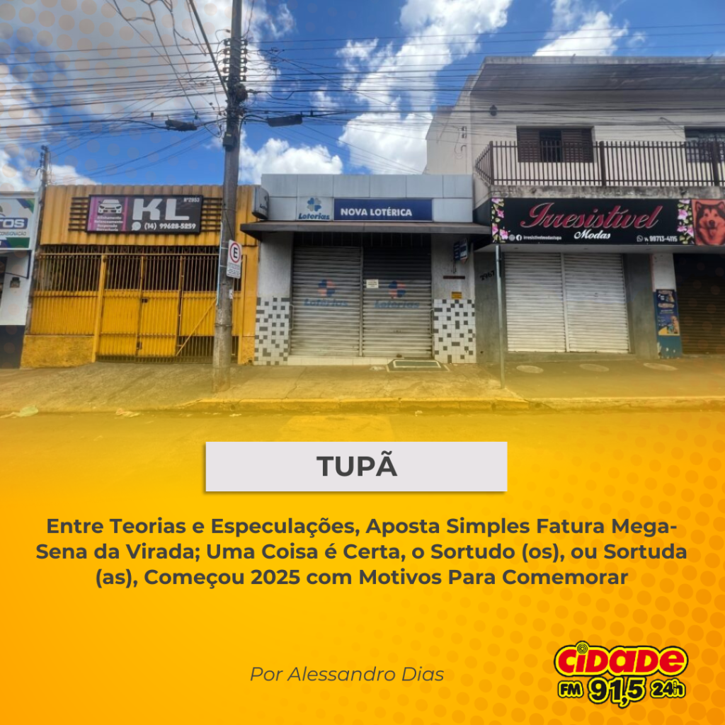 por Alessandro Dias Tupã, SP- Após o sorteio da Mega-Sena da Virada, que atraiu a atenção de todo o país, Tupã (SP) tornou-se um dos