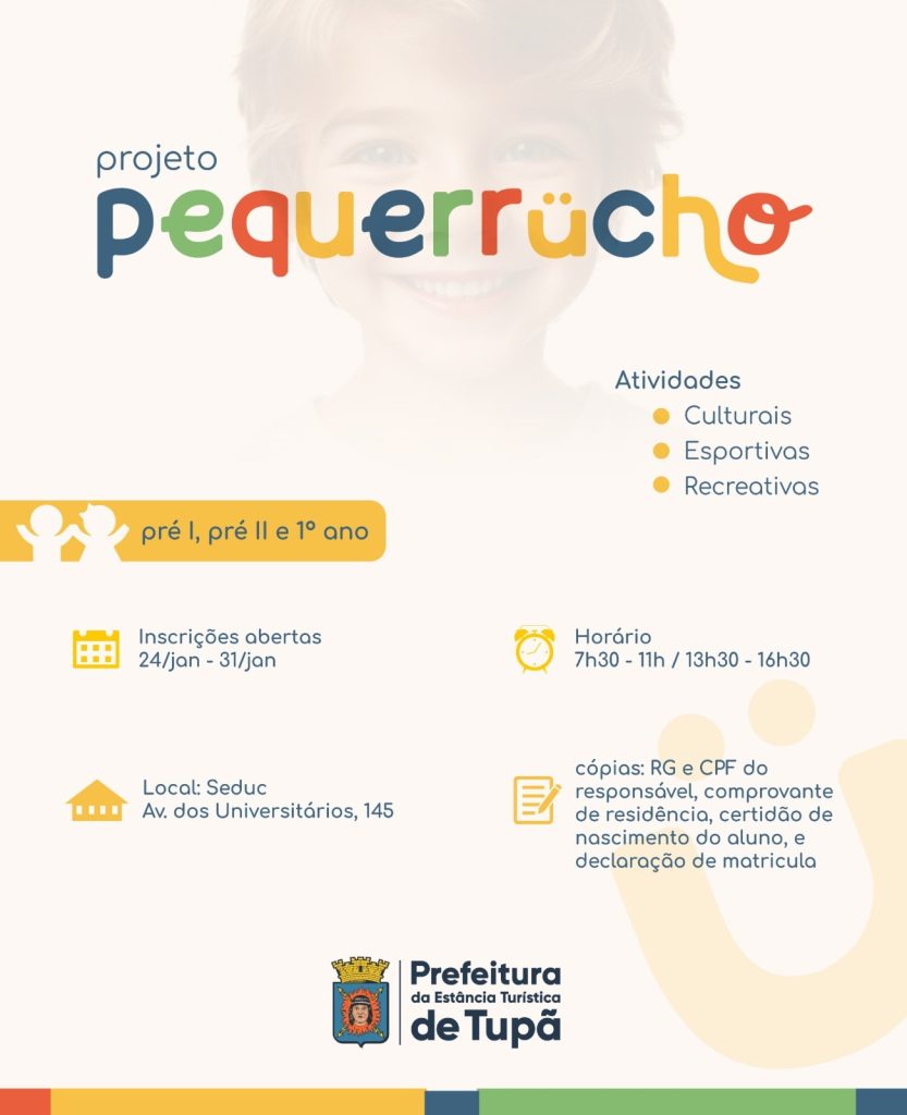 Começou nesta sexta-feira (24), as matrículas para o projeto Pequerrucho, uma iniciativa da Prefeitura de Tupã voltada para alunos da Educação Infantil (Pré I e
