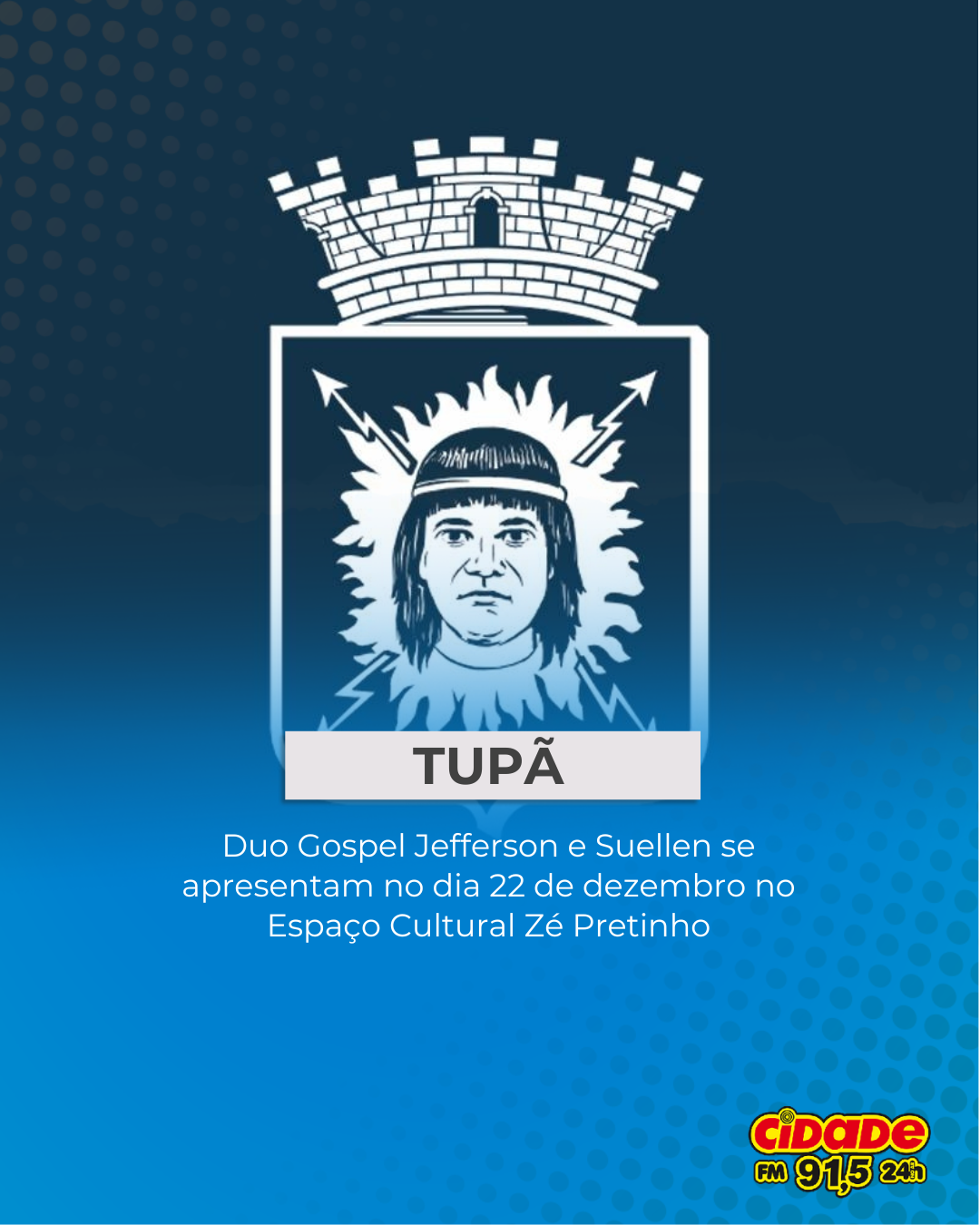 Geral TUPÃ: Duo Gospel Jefferson e Suellen se apresentam no dia 22 de dezembro no Espaço Cultural Zé Pretinho 17 de dezembro de 2025 Nenhum comentário
