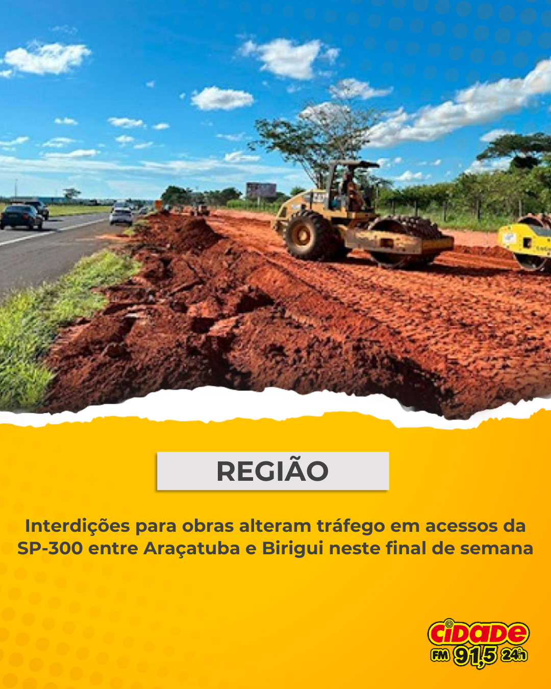 Geral REGIÃO: Interdições para obras alteram tráfego em acessos da SP-300 entre Araçatuba e Birigui neste final de semana 13 de dezembro de 2025 Nenhum comentário