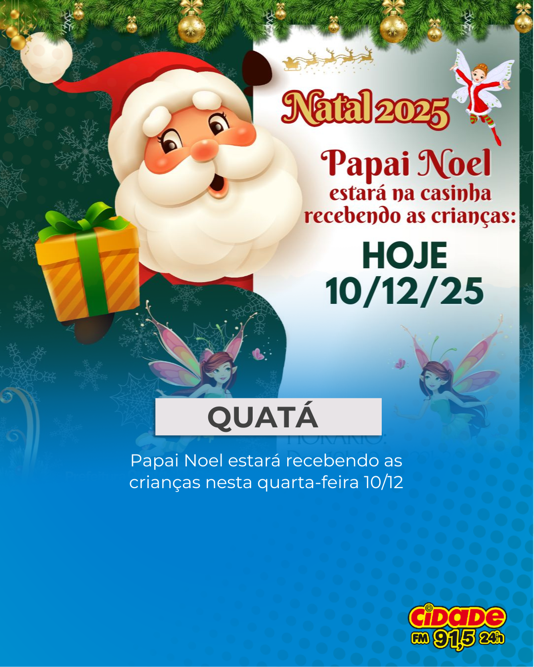 Geral QUATÁ: Papai Noel estará recebendo as crianças nesta quarta-feira 10/12 10 de dezembro de 2025 Nenhum comentário