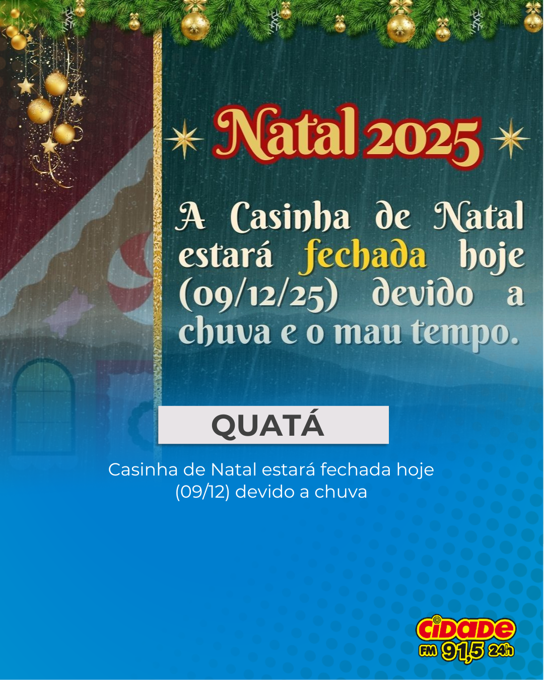 Geral QUATÁ: Casinha de Natal estará fechada hoje (09/12) devido a chuva 9 de dezembro de 2025 Nenhum comentário