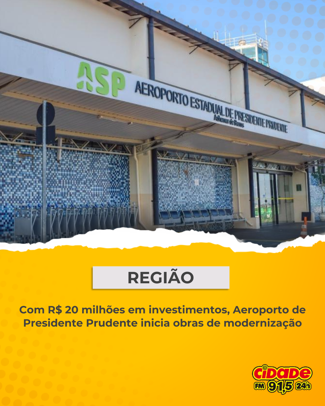Geral REGIÃO: Com R$ 20 milhões em investimentos, Aeroporto de Presidente Prudente inicia obras de modernização 10 de dezembro de 2025 Nenhum comentário