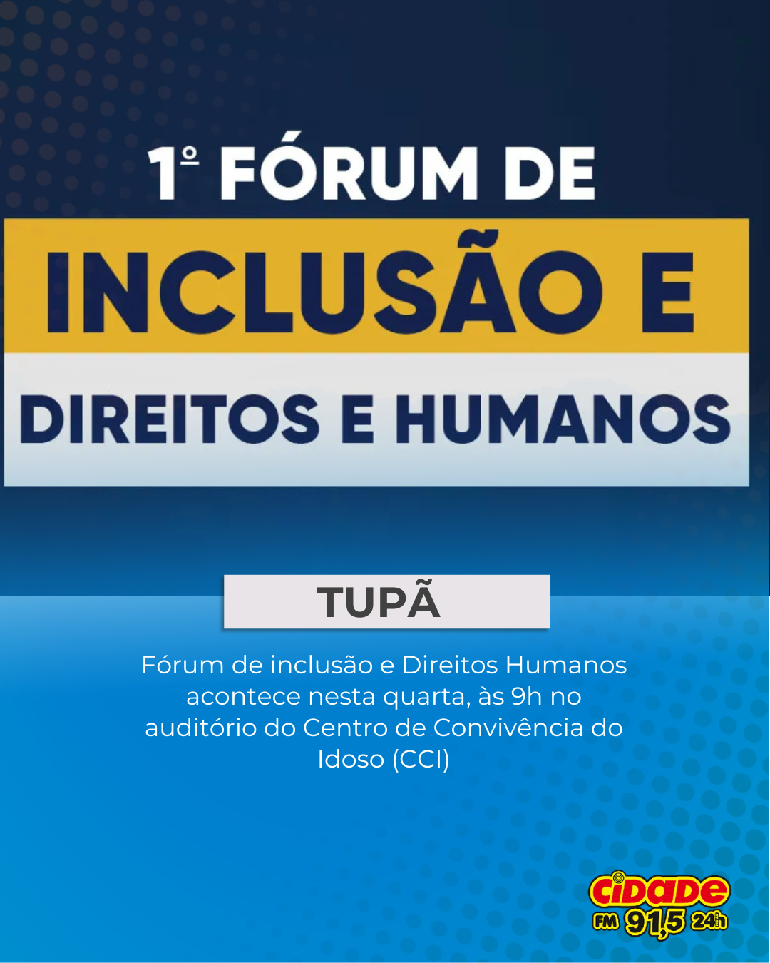Geral TUPÃ: Fórum de inclusão e Direitos Humanos acontece nesta quarta, às 9h no auditório do Centro de Convivência do Idoso (CCI) 10 de dezembro de 2025 Nenhum comentário