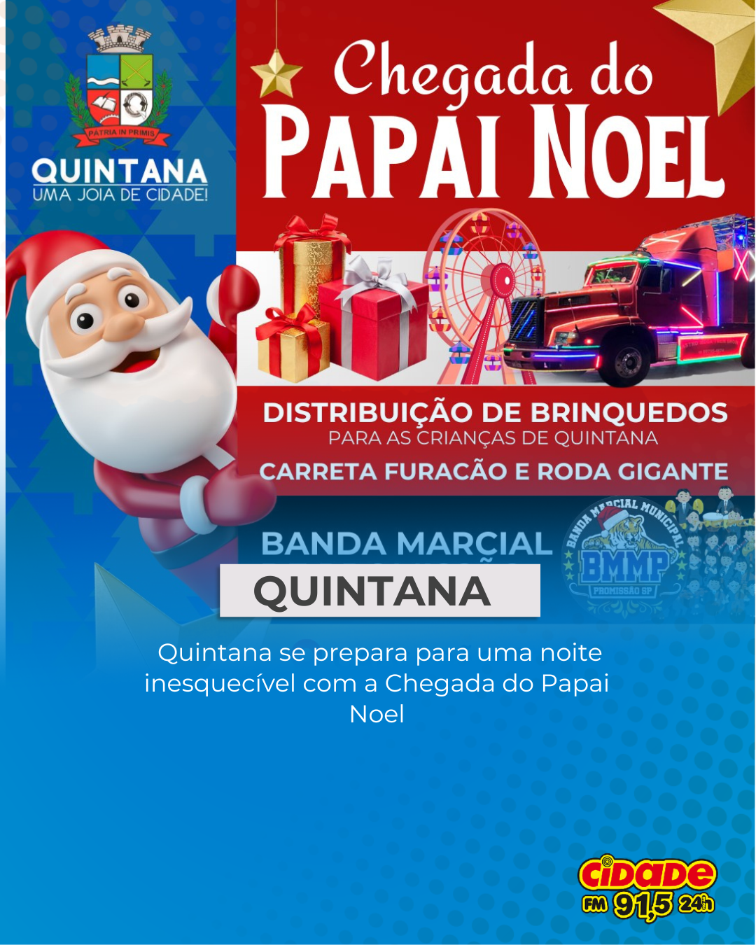 Geral DESTAQUE: Quintana se prepara para uma noite inesquecível com a Chegada do Papai Noel 9 de dezembro de 2025 Nenhum comentário