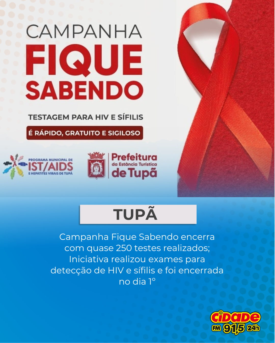 Geral TUPÃ: Campanha Fique Sabendo encerra com quase 250 testes realizados; Iniciativa realizou exames para detecção de HIV e sífilis e foi encerrada no dia 1º 8 de dezembro de 2025 Nenhum comentário
