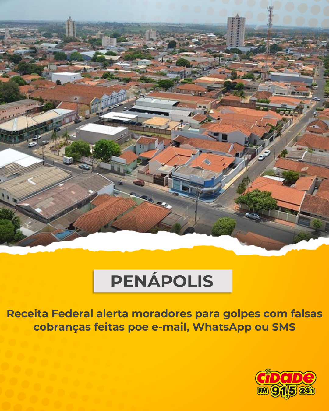 Geral PENÁPOLIS: Receita Federal alerta moradores para golpes com falsas cobranças feitas poe e-mail, WhatsApp ou SMS 8 de dezembro de 2025 Nenhum comentário