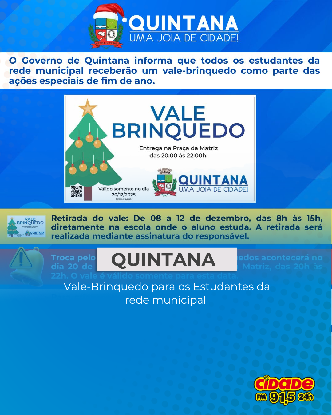Geral QUINTANA: Vale-Brinquedo para os Estudantes da rede municipal 8 de dezembro de 2025 Nenhum comentário