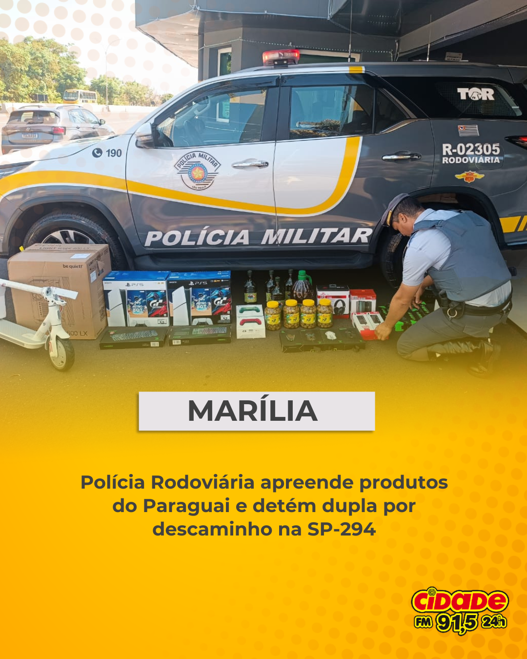 Geral MARÍLIA: Polícia Rodoviária apreende produtos do Paraguai e detém dupla por descaminho na SP-294 8 de dezembro de 2025 Nenhum comentário