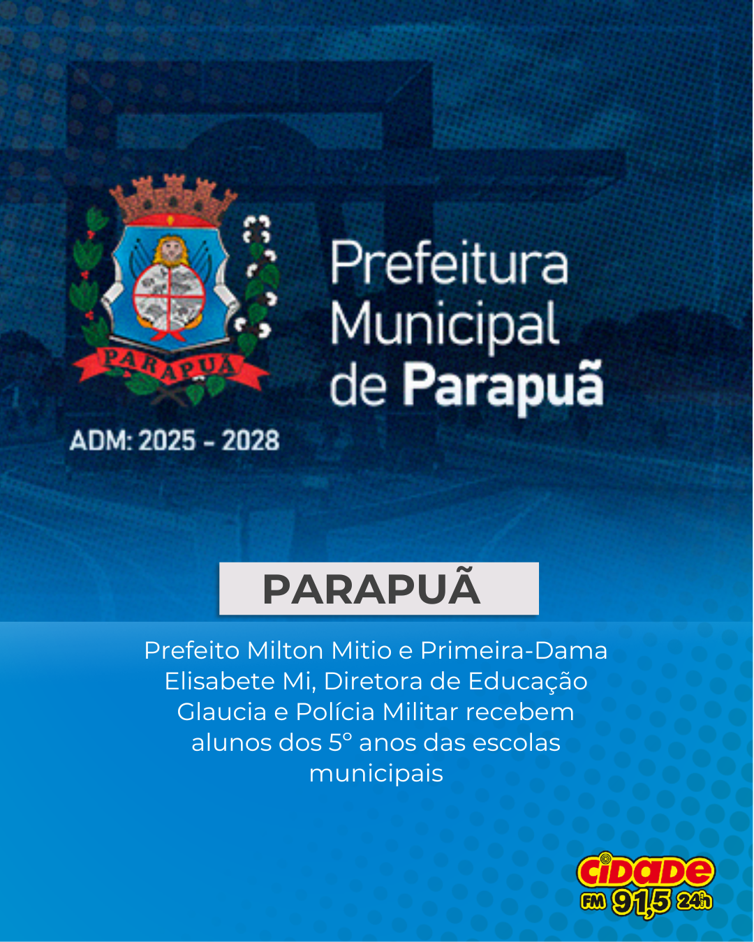 Geral PARAPUÃ: Prefeito Milton Mitio e Primeira-Dama Elisabete Mi, Diretora de Educação Glaucia e Polícia Militar recebem alunos dos 5º anos das escolas municipais 5 de dezembro de 2025 Nenhum comentário