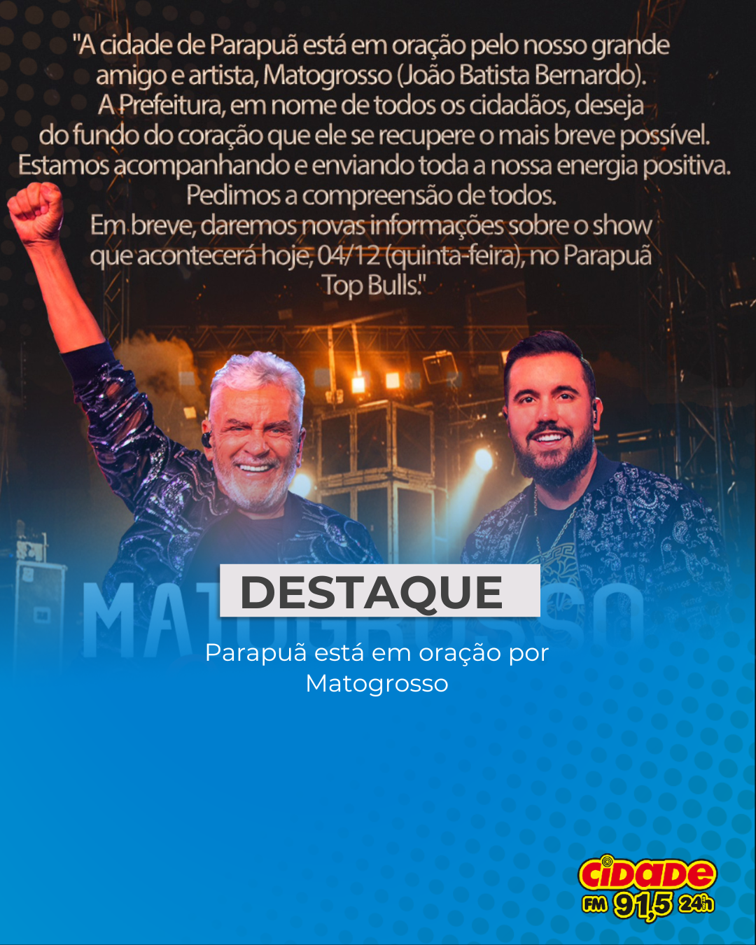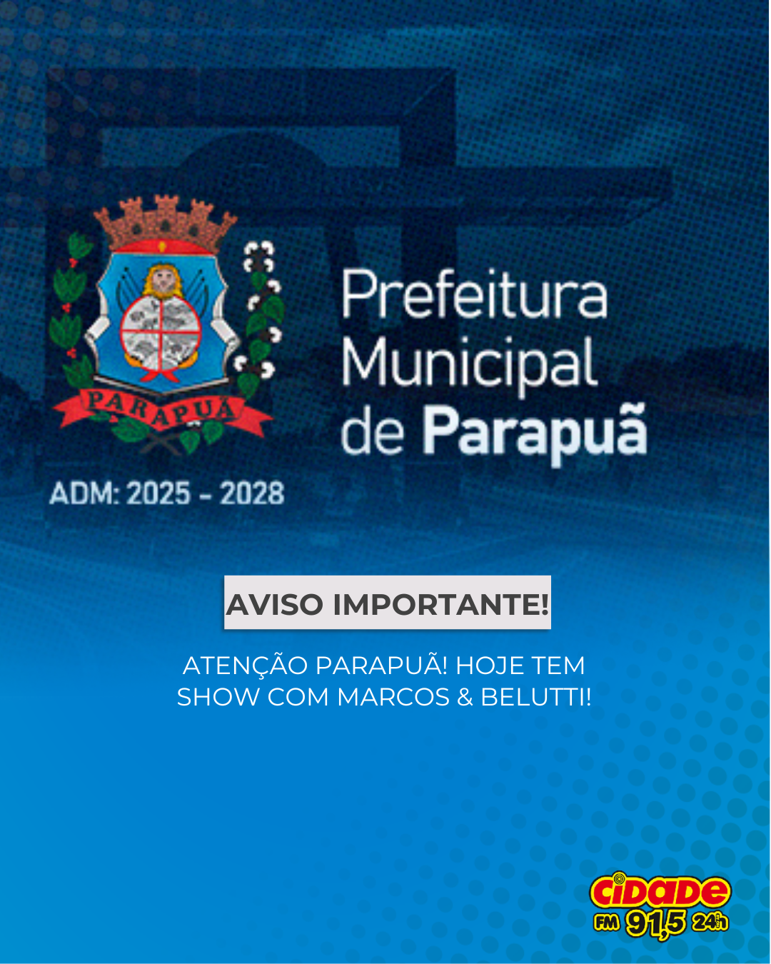 Geral AVISO IMPORTANTE: ATENÇÃO PARAPUÃ! HOJE TEM SHOW COM MARCOS & BELUTTI! 4 de dezembro de 2025 Nenhum comentário