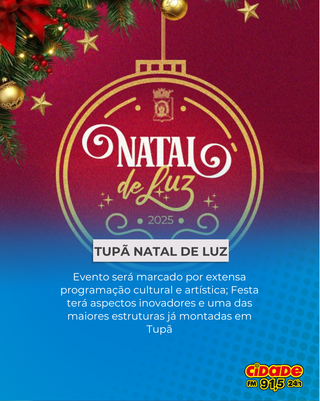 Geral TUPÃ NATAL DE LUZ: Evento será marcado por extensa programação cultural e artística; Festa terá aspectos inovadores e uma das maiores estruturas já montadas em Tupã 4 de dezembro de 2025 Nenhum comentário