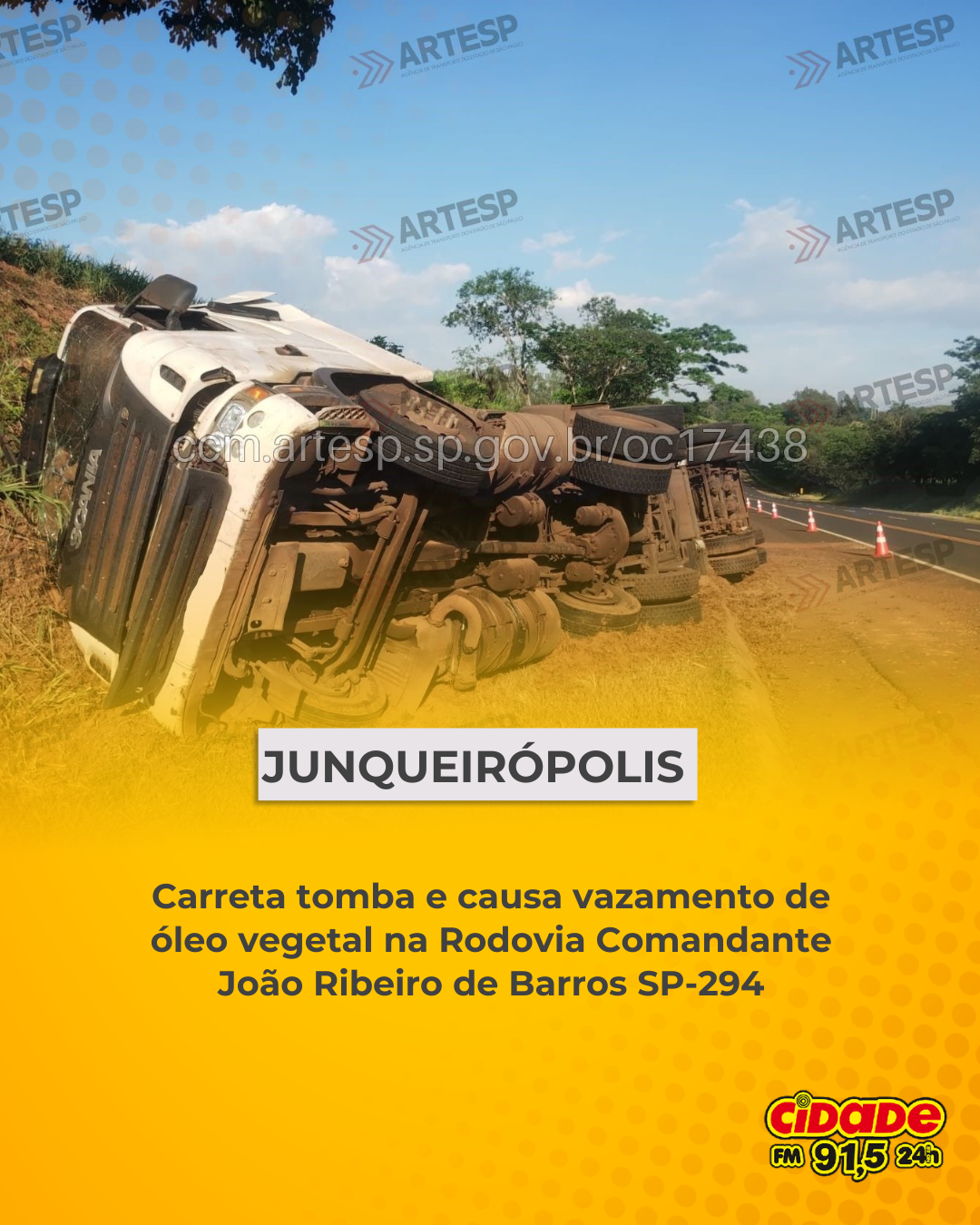 Geral JUNQUEIRÓPOLIS: Carreta tomba e causa vazamento de óleo vegetal na Rodovia Comandante João Ribeiro de Barros SP-294 4 de dezembro de 2025 Nenhum comentário