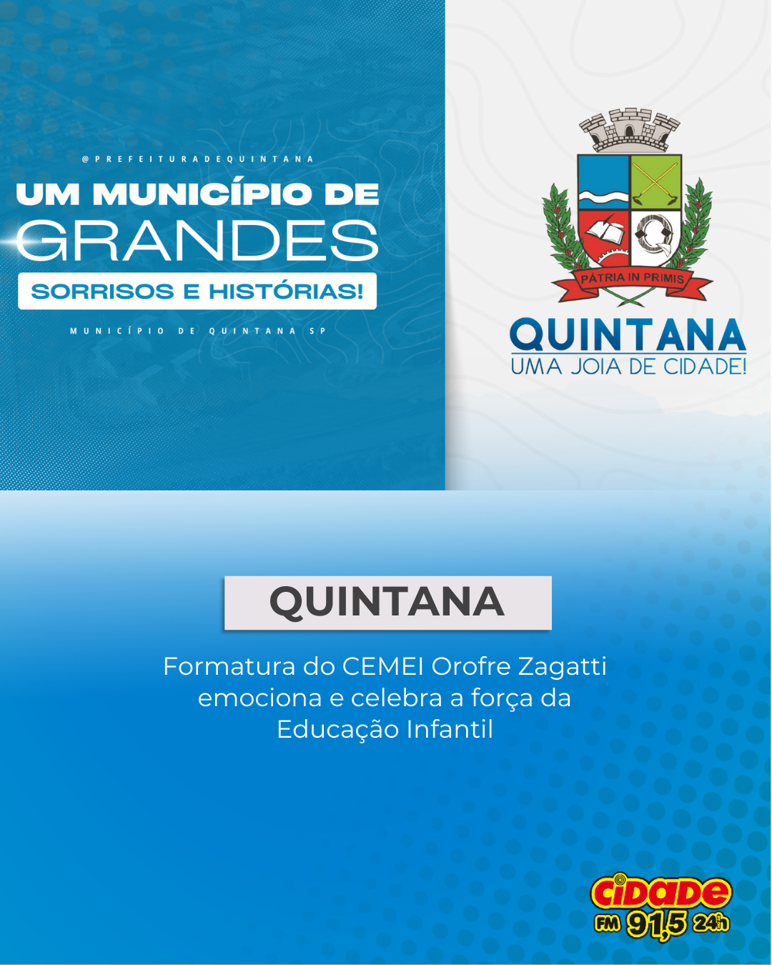 Geral QUINTANA: Formatura do CEMEI Orofre Zagatti emociona e celebra a força da Educação Infantil 4 de dezembro de 2025 Nenhum comentário