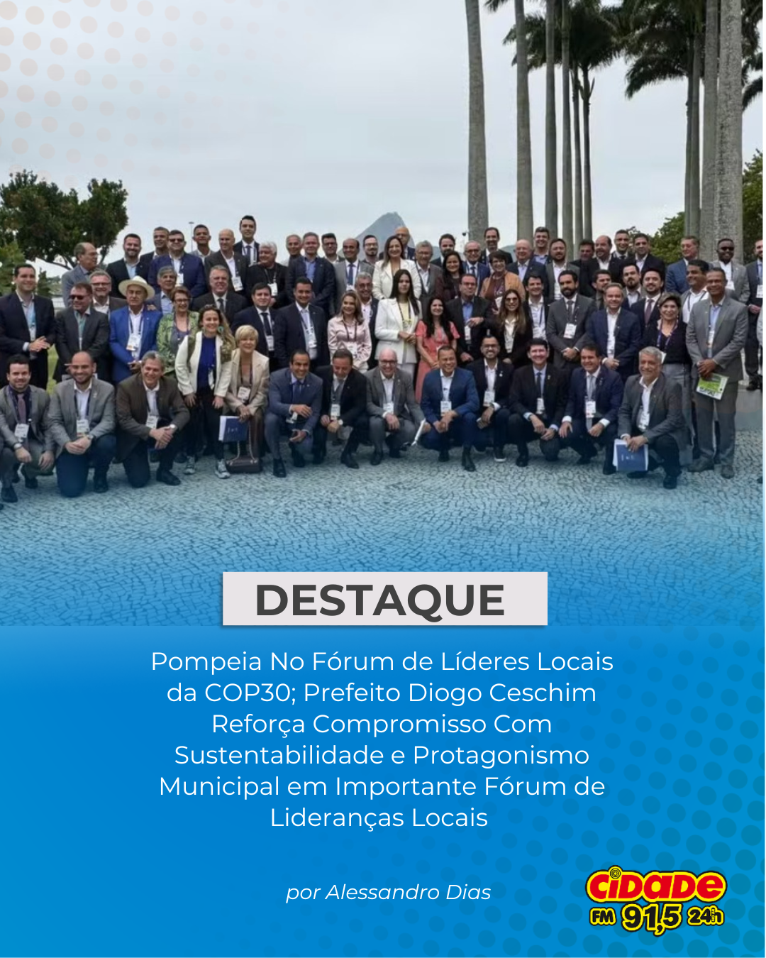 Geral DESTAQUE: Pompeia No Fórum de Líderes Locais da COP30; Prefeito Diogo Ceschim Reforça Compromisso Com Sustentabilidade e Protagonismo Municipal em Importante Fórum de Lideranças Locais 5 de novembro de 2025 Nenhum comentário