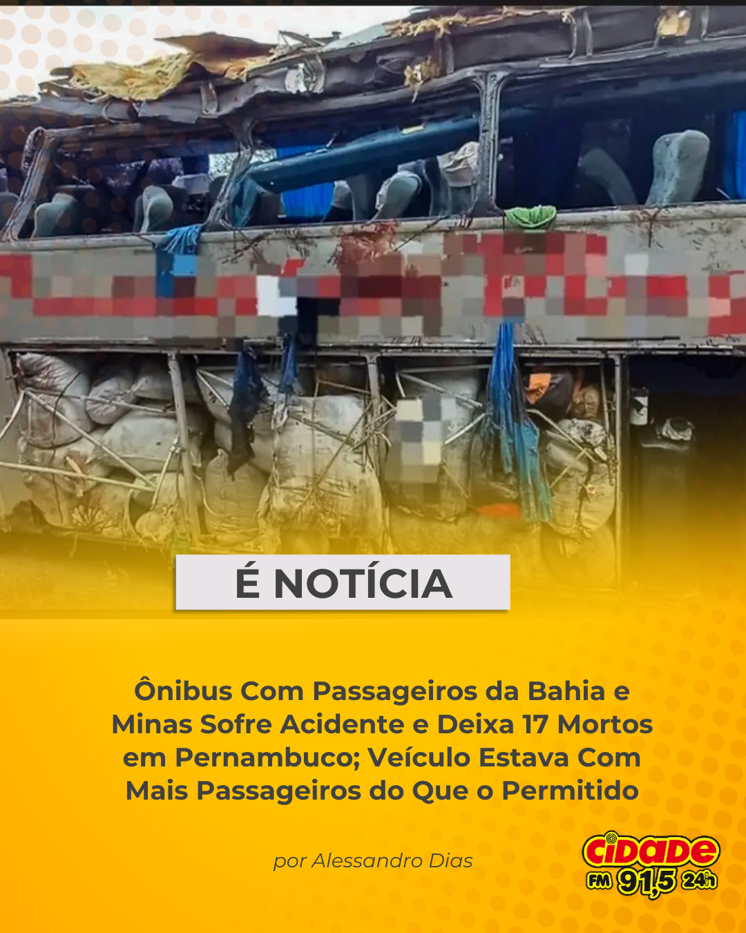 Geral É NOTÍCIA: Ônibus Com Passageiros da Bahia e Minas Sofre Acidente e Deixa 17 Mortos em Pernambuco; Veículo Estava Com Mais Passageiros do Que o Permitido 18 de outubro de 2025 Nenhum comentário