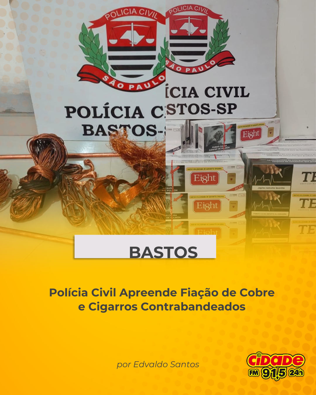 Geral BASTOS: Polícia Civil Apreende Fiação de Cobre e Cigarros Contrabandeados 17 de outubro de 2025 Nenhum comentário