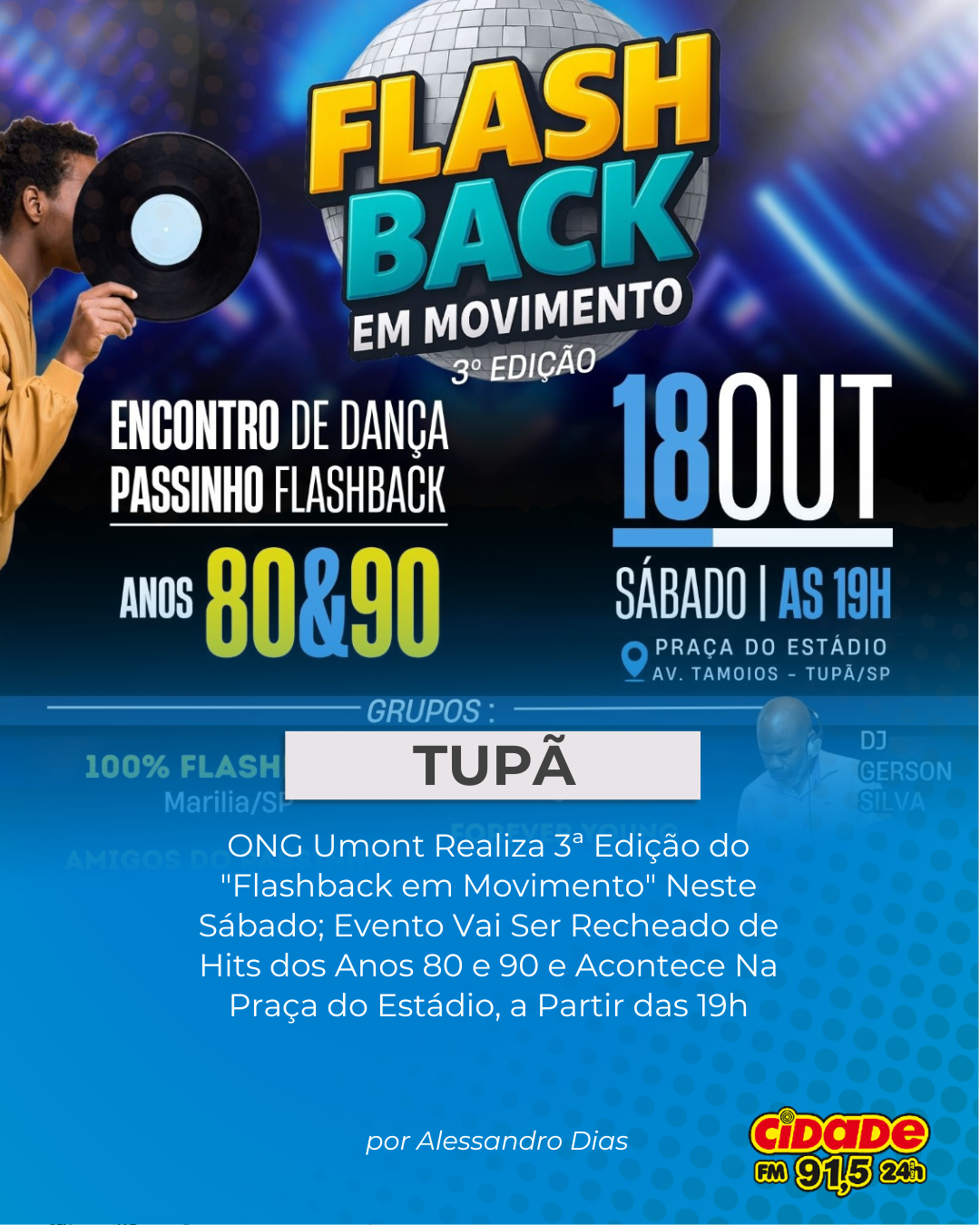 Geral TUPÃ: ONG Umont Realiza 3ª Edição do “Flashback em Movimento” Neste Sábado; Evento Vai Ser Recheado de Hits dos Anos 80 e 90 e Acontece Na Praça do Estádio, a Partir das 19h 16 de outubro de 2025 Nenhum comentário