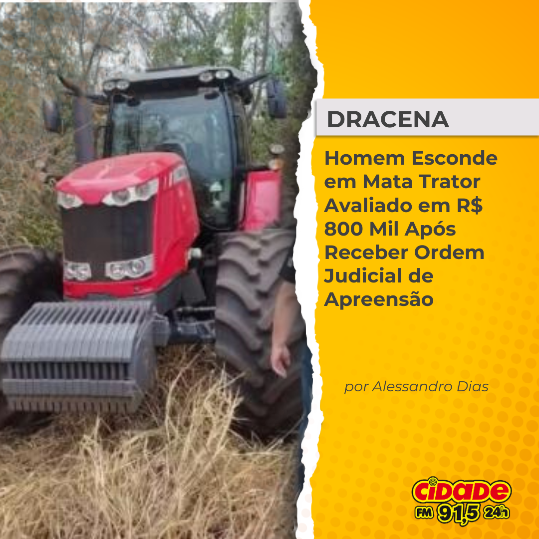 Geral DRACENA: Homem Esconde em Mata Trator Avaliado em R$ 800 Mil Após Receber Ordem Judicial de Apreensão 13 de outubro de 2025 Nenhum comentário