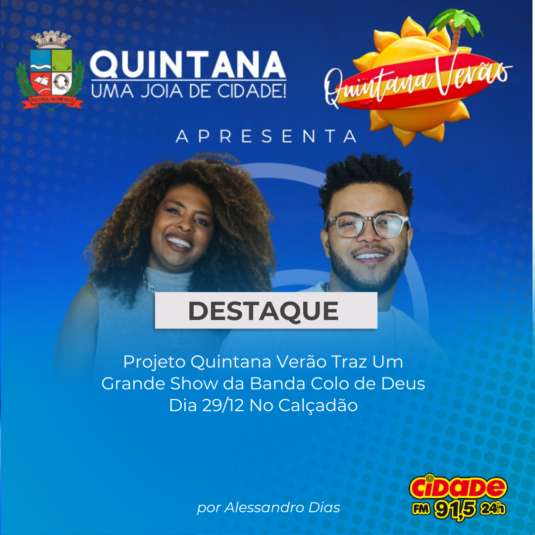 Geral DESTAQUE: Projeto Quintana Verão Traz Um Grande Show da Banda Colo de Deus Dia 29/12 No Calçadão 9 de outubro de 2025 Nenhum comentário