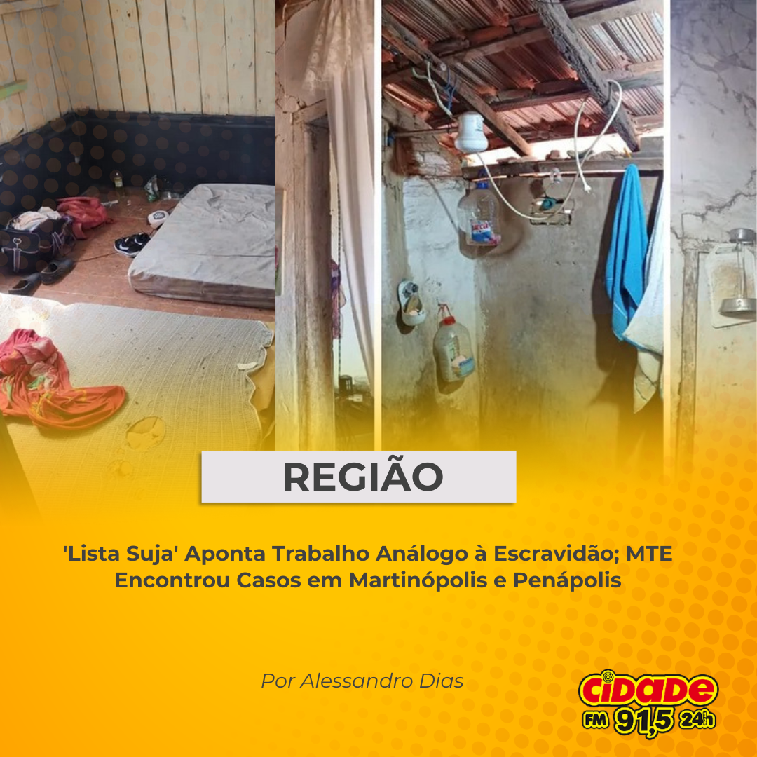 Geral REGIÃO: ‘Lista Suja’ Aponta Trabalho Análogo à Escravidão; MTE Encontrou Casos em Martinópolis e Penápolis 9 de outubro de 2025 Nenhum comentário