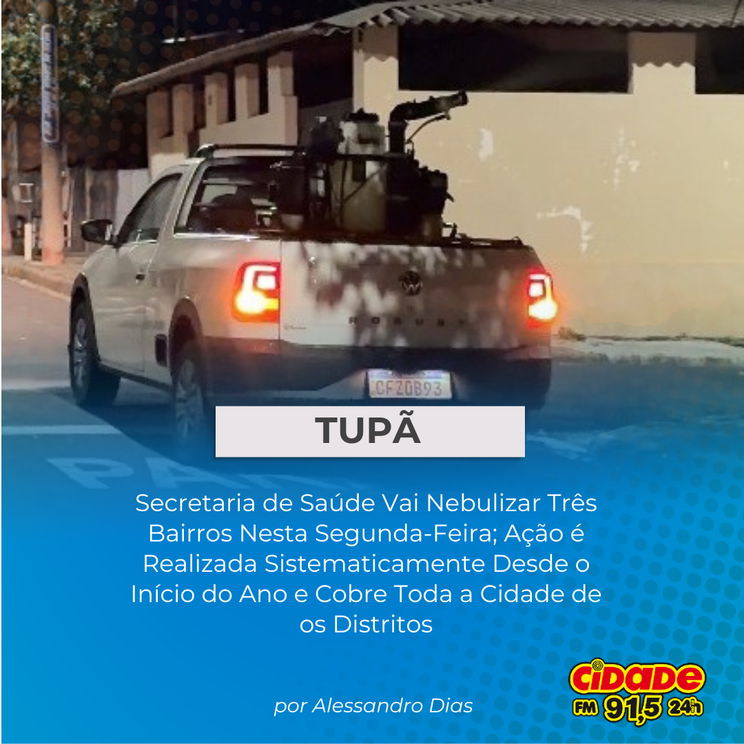Geral TUPÃ: Secretaria de Saúde Vai Nebulizar Três Bairros Nesta Segunda-Feira; Ação é Realizada Sistematicamente Desde o Início do Ano e Cobre Toda a Cidade de os Distritos 7 de outubro de 2025 Nenhum comentário