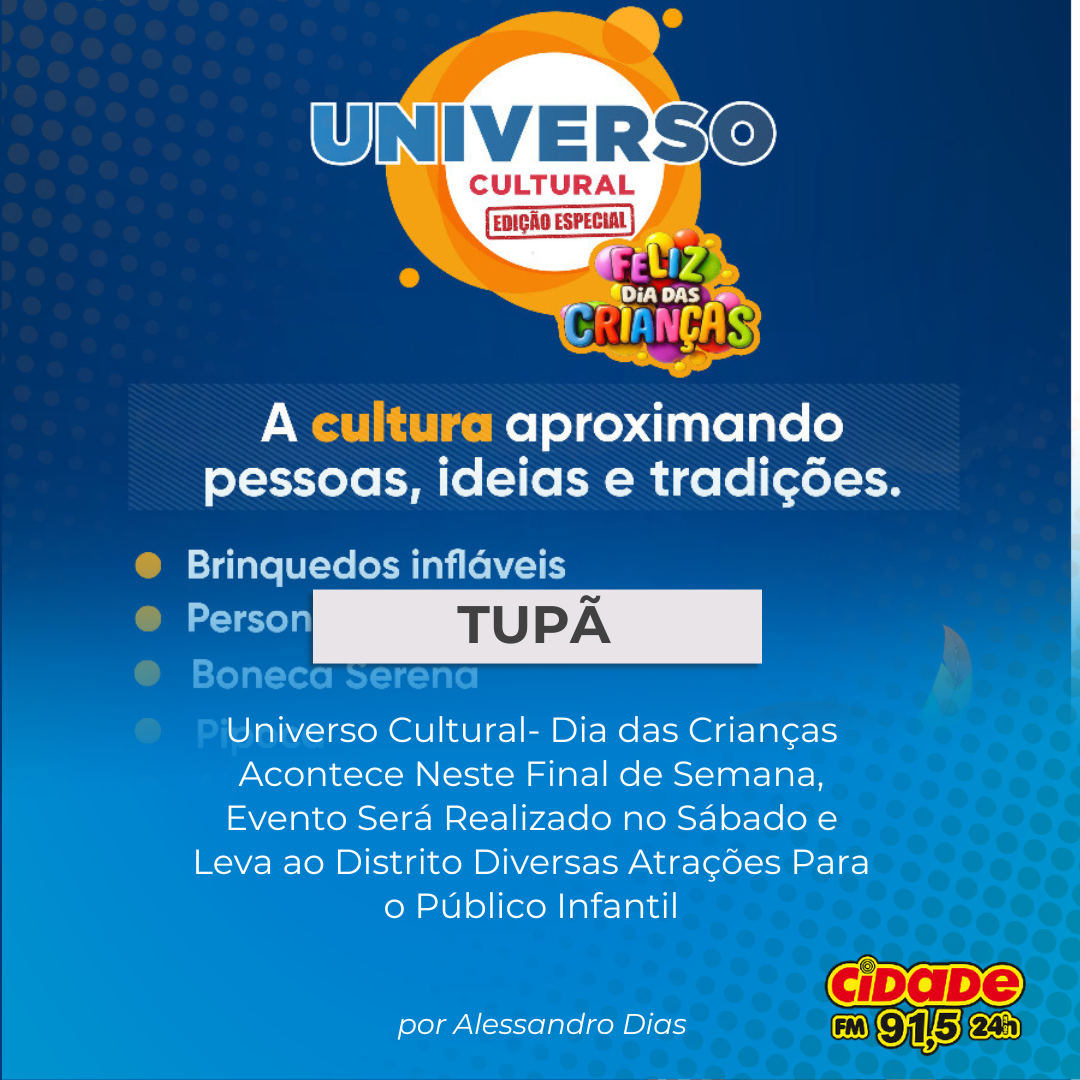Geral TUPÃ: Universo Cultural- Dia das Crianças Acontece Neste Final de Semana, Evento Será Realizado no Sábado e Leva ao Distrito Diversas Atrações Para o Público Infantil 7 de outubro de 2025 Nenhum comentário