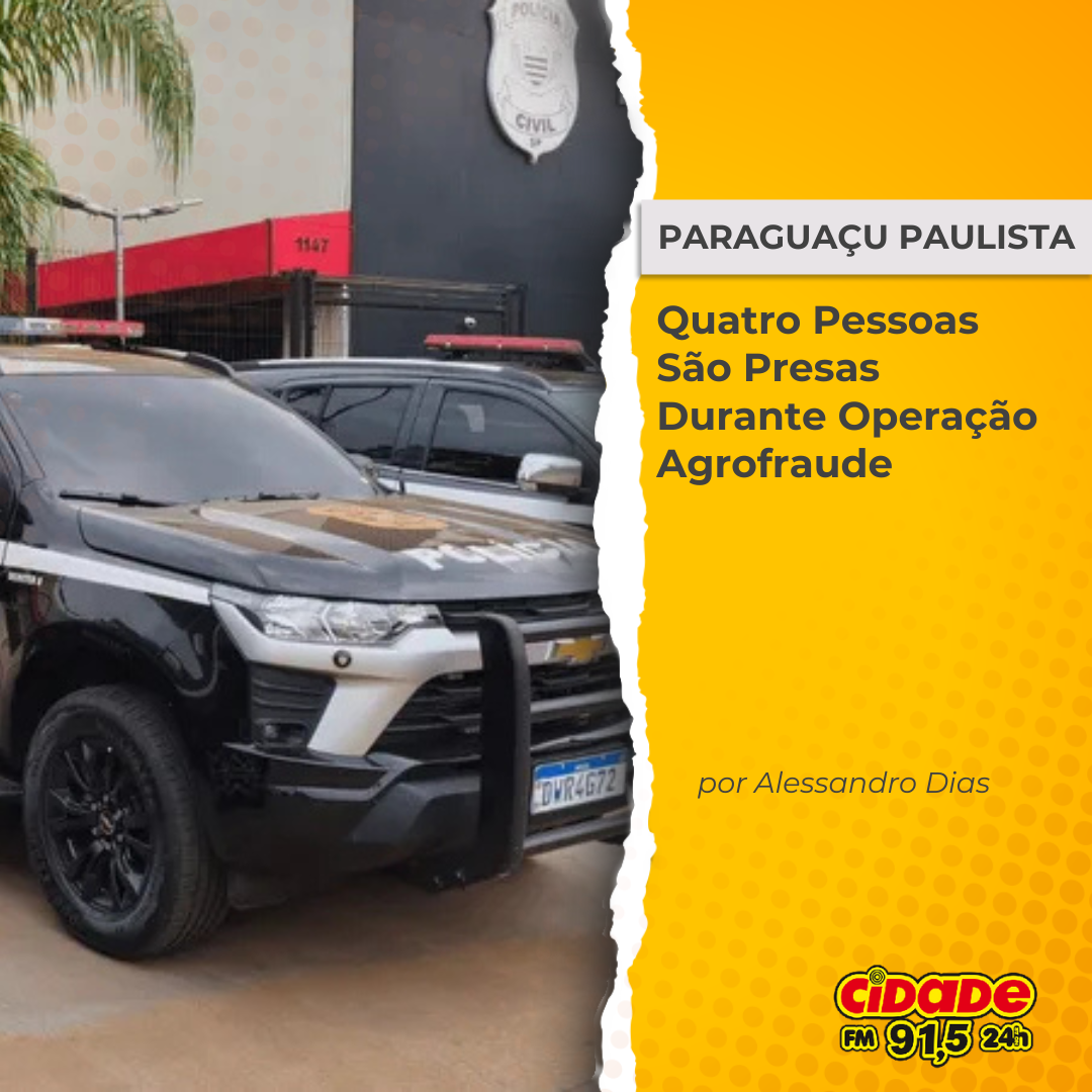 Geral PARAGUAÇU PAULISTA: Quatro Pessoas São Presas Durante Operação Agrofraude 7 de outubro de 2025 Nenhum comentário